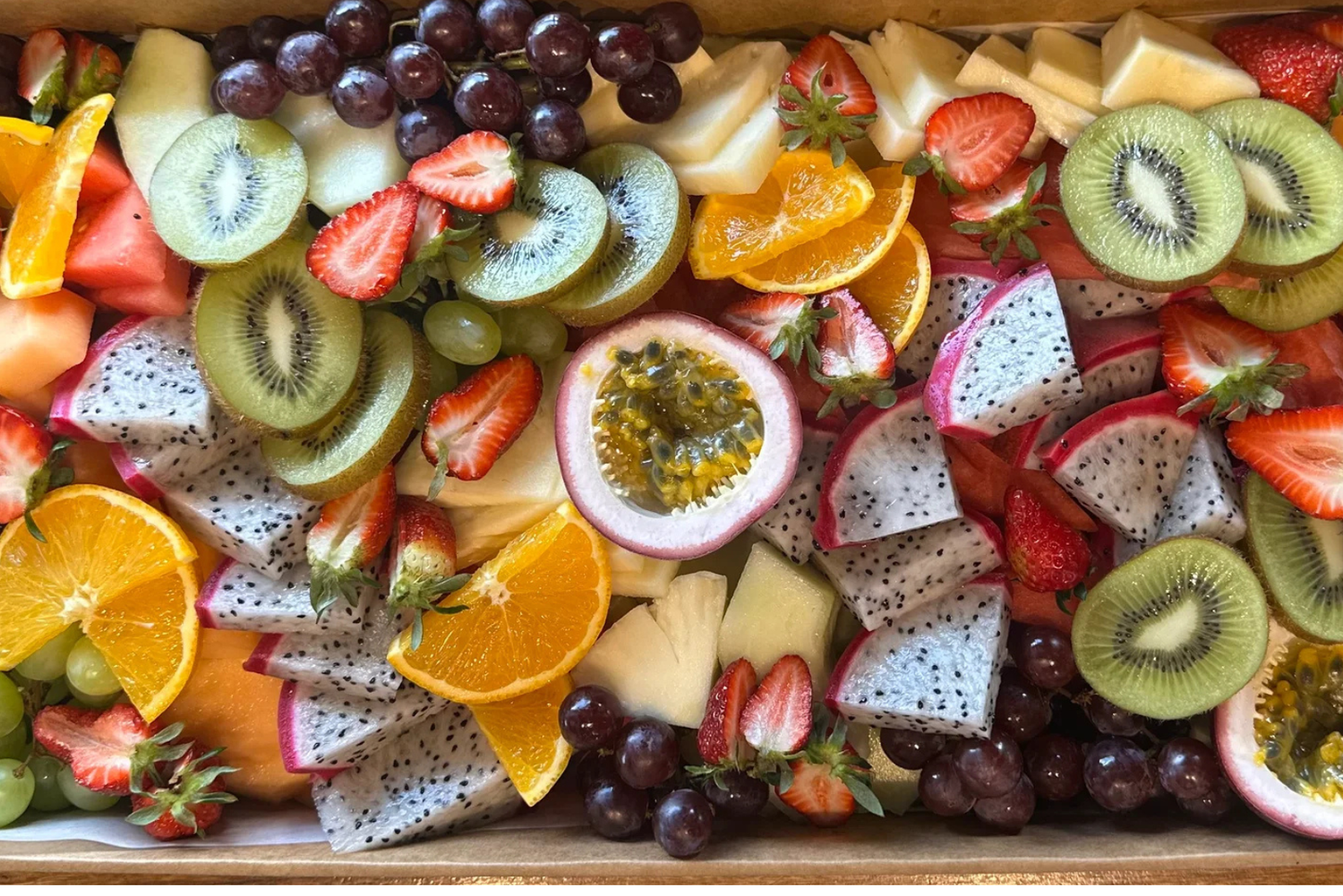 A vibrant selection of freshly cut fruits, arranged beautifully for any occasion.