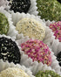 Delicate feta cheese balls rolled in a variety of vibrant coatings — herbs, sesame, rose petals, and black sesame — offering a beautiful mix of colours and flavours. Perfect for grazing tables, canapés, or gifting.